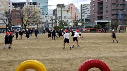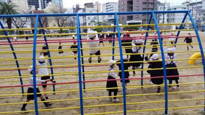 お昼になり、すこし雲りはじめました。でも、みんな元気に遊んでいます。