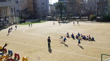 1年1組のかけ足の様子です。「がんばれー」の声が響いていました。
