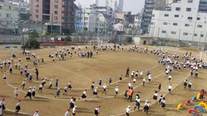 今日も休み時間に、かけ足タイムを行いました。児童と先生たちが一緒に、音楽に合わせて、自分のペースでかけ足と歩く運動を頑張りました。
