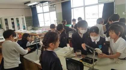 4年2組の理科の実験の様子です。単元は「もののあたたまり方」です。今日は水のあたたまり方を実験で学習しました。