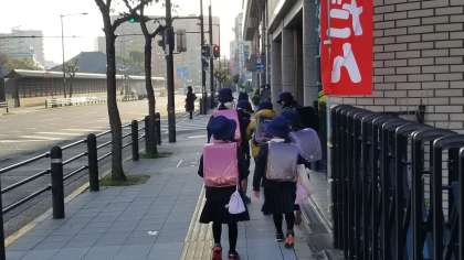 今日は、登校指導及びPTA交通安全指導を行いました。子どもたちは、たくさんの方に見守られて、元気に登校しました。見守り隊の皆さん、PTA・学園の先生方、いつもありがとうございます。