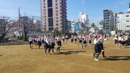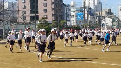 かけ足タイムの様子です。お友だちと楽しく走っています。見ていて気持ちがいいですね。