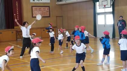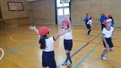 本日4時間目、体育館で2年1組の研究授業を行いました。早川先生による、「体つくりの運動遊び」の授業です。体全体を使ってするじゃんけんやだるまさんが転んだ等、体ほぐしの運動を行っています。