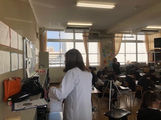 大阪市の学校では、年に1回、施設の空気検査をしています。教室内(その年度によってどこか一教室決めます。今年度は3-1教室でした。)の空気の成分を検査して換気の度合いなどの参考にしています。学校薬剤師の堀越先生に来ていただいて午前中に測定しました。