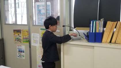 図書委員の児童が図書館開放の放送をしています。