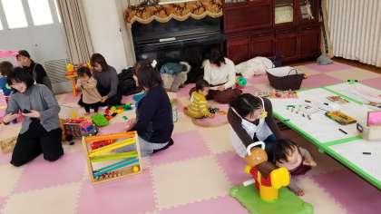 本日、多目的室で、子育て支援サークル「ひまわり」が行われました。天候もよく、たくさんのお母さんと子どもたちが参加してくれました。区役所、地域の皆さん、いつもありがとうございます。