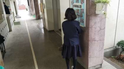 今日は朝まで残った雨の影響で、運動場は使用禁止です。委員会の児童が廊下のモップかけをしてくれています。いつもありがとう。