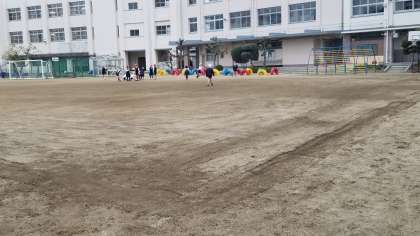 元気に運動場で遊んでいます。