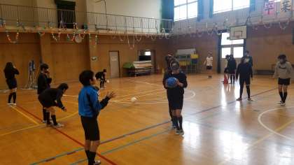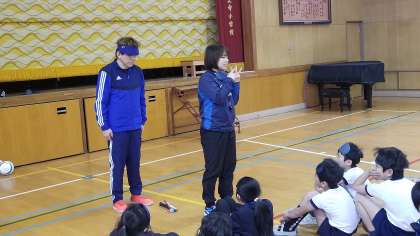 本日5年生が、ブラインドサッカー体験を行いました。ブラインドサッカーは、視覚障がい者と健常者が「音」と「声」のコミュニケーションで行うサッカーです。