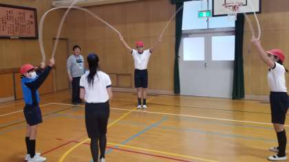 本日5時間目、6年1組で体育の授業研究を行いました。「テクニカルロープ」を使って、巧みな動きを高めるための運動を行いました。今年度最後の授業研究となりました。