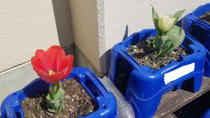 1年生の育てているチューリップがもう開花しました。