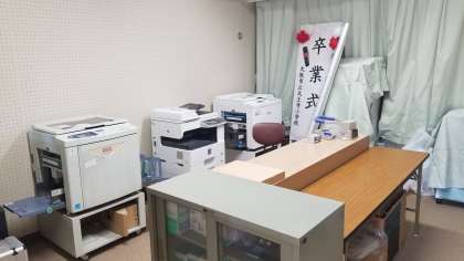 来年度、学級数増等で、教職員の数が現状より6名多くなる予定です。そのため、職員の机を入れるスペースを確保するため、印刷機等を移動しました。