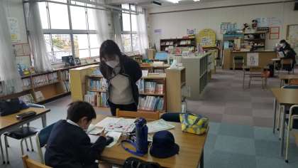 居場所確保のため登校した児童の様子です。タブレットを活用して学習していました。
