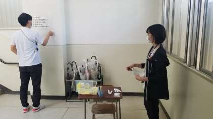 登校してきたら、各学年で健康観察をして教室に入ります。今後も健康観察表もとに健康観察をおこないます。ご家庭や学園でも、健康観察表の記入と学校への提示のご協力をお願いします。