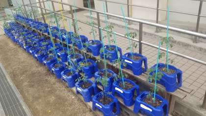 先日の登校日に、2年生がトマトの苗を植えました。たくさん実がなるといいですね。
