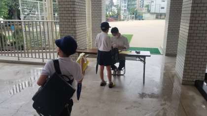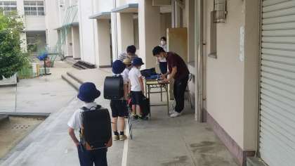 今日は2・3・5年生が登校日です。登校後、健康観察表による健康観察を実施しています。