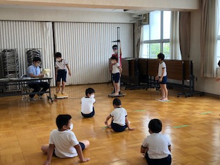 3年生の登校日の様子です。1組は学級での活動、2組は発育測定をしていました。休業でできなかった発育測定について、今後、全学年で実施して行きます。