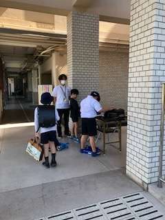 おはようございます。今日はいいお天気です。登校してきた児童が教室に入る前に健康観察表を持って来ているか確認していました。ちゃんと持って来ていて教室で担任に渡せたようです。ご協力ありがとうございます。