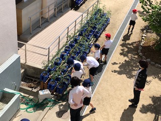 2年生は、植物のお世話や縄跳びなど1時間目は体を動かす活動をしていました。