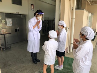 児童の係も、最少人数で間隔をとって運んでいます。
