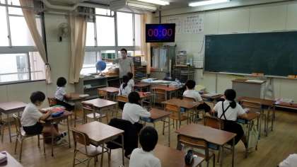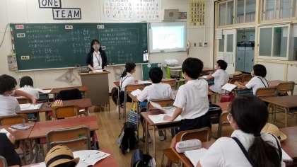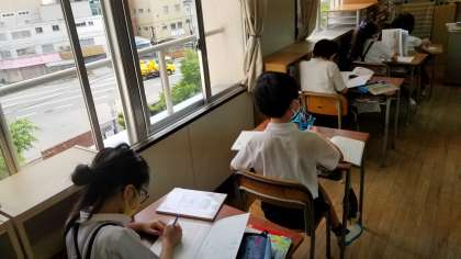 午後の授業の様子です。窓、扉を開放して授業をしています。気持ちよい風が教室を通りすぎていきました。