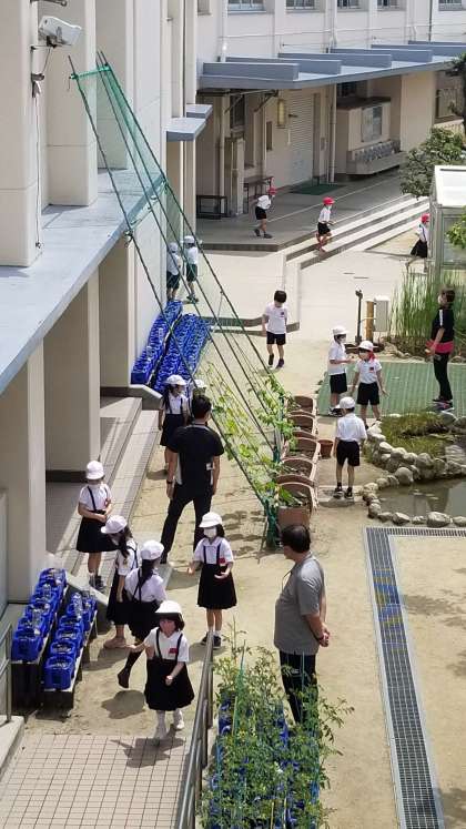 午前中の休み時間の様子です。1・2年生はザリガニ池周辺が大好きです。