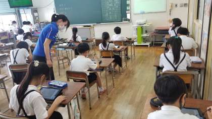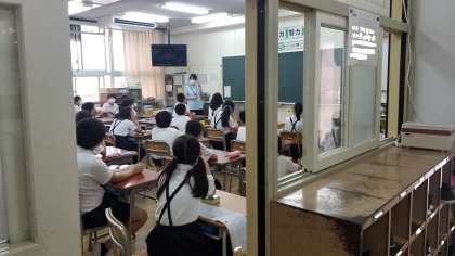 久しぶりの全員集合です。朝の学活でしっかりと健康観察を行っています。授業では、換気やマスクの着用・消毒など、コロナ感染症拡大予防対策をおこなっています。