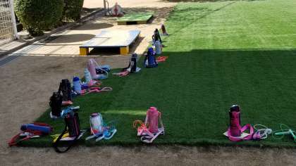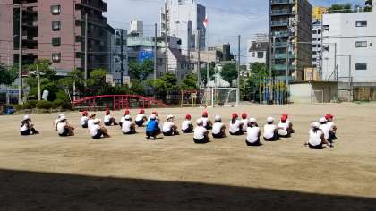 5年生の体育の様子です。集合もいつもより広めに並んでいます。