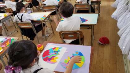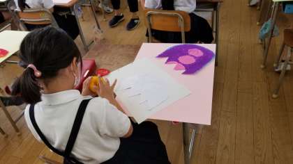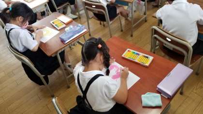 1・2年生の授業の様子です。どちらも図工の様子です。