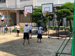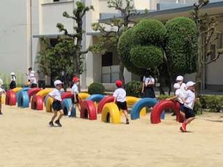 休み時間、運動場では、子どもたちが元気に遊んでいます。