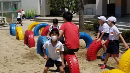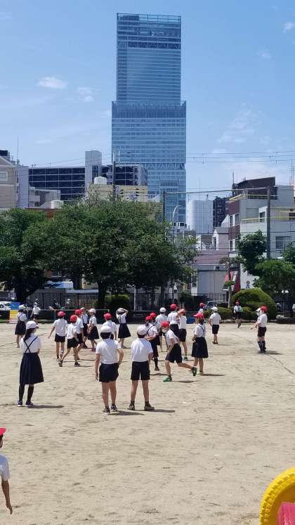 休み時間に合わせて太陽が顔を出しました。子どもたちは元気いっぱい遊んでいます。
