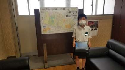 集会委員の児童が校長室に来てくれました。