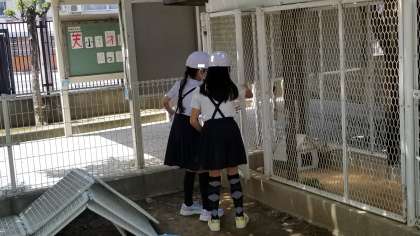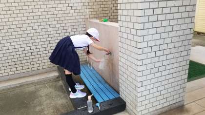 飼育委員の児童が活動していました。うさぎの水の交換や小屋の清掃などです。