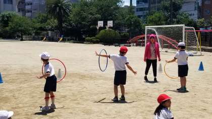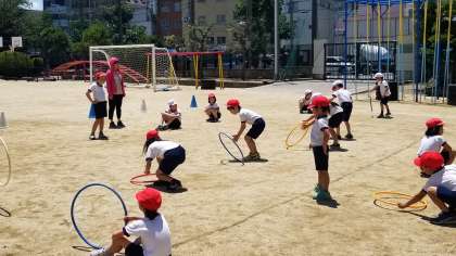 2年生の体育の様子です。用具を操作する運動遊びです。