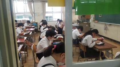 下の写真:3年生の音楽の様子です。今日のめあては、「ドレミファソラシドをすらすらうたったりひいたりしよう。」です。この後フェイスシールドも活用しました。