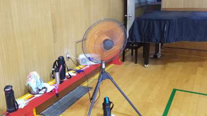 全ての扉と窓を開けて、扇風機を4隅に設置して換気しています。