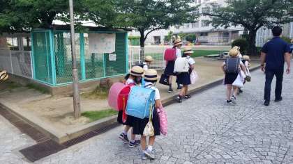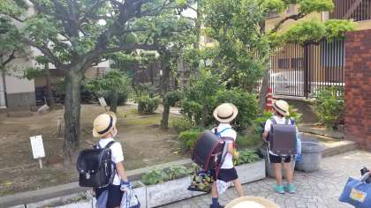 「先生、あそこに、セミがいる。」と子どもたちはすぐにセミを見つけることができます。すごい能力ですね。