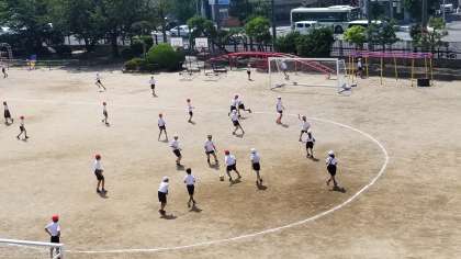 元気に運動場で遊んでいます。