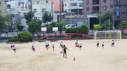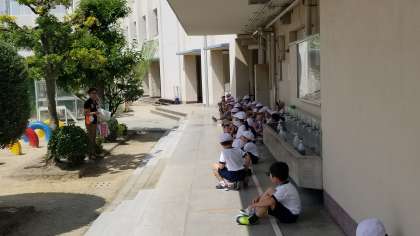 1年生の体育の様子です。運動をしたらしっかりと休憩です。