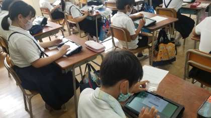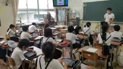 5年生の様子です。双方向通信「Teams」のテストをしていました。自分のIDとパスを打ち込み、担任の先生と通信をしていました。今後、効果的な活用を考えていきたいと思います。