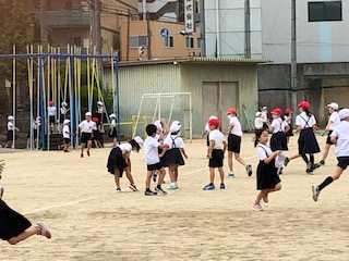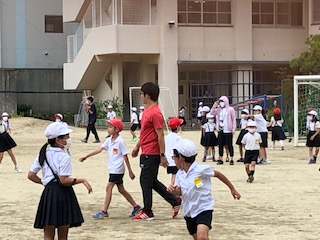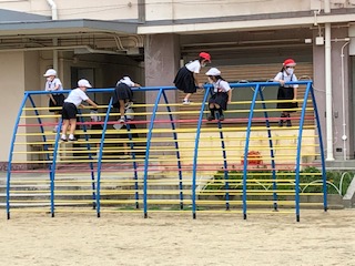 今日も、暑さ指数が「危険」には達していなかったので、子どもたちは運動場で遊んでいました。皆、とても元気です。遊んだ後は水分補給など熱中症対策をしていました。