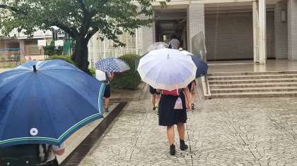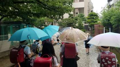 おはようございます。雨が降っていますが、子どもたちはいつも通り元気に登校しました。