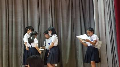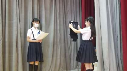 5年生の総合的な学習の様子です。タブレットで発表の様子をビデオに撮り確認しています。
