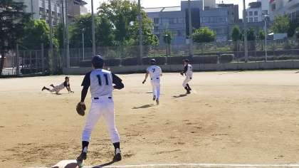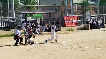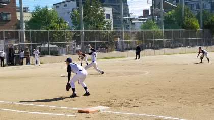 選手やグランドに入る人の検温を行うなどしっかりとしたコロナ対策の下、天王寺区のPTAのお父さんたちがソフトボールで交流を深めました。