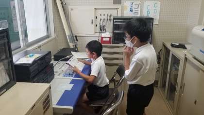 放送委員の児童が活動しています。今日の給食の献立について説明していました。