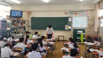 1年生の国語の様子です。今日は来年度新1年生になる児童の、学校見学会・説明会です。自分のいた幼稚園の先生を見つけた児童もいました。