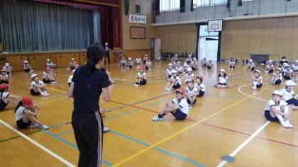 3・4年生は団体演技の位置の確認をしっかりとしていました。