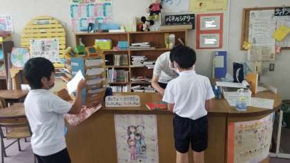 今日は係の児童による図書館開放はありませんでした。先生が本の貸し出しをしていました。
