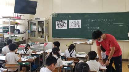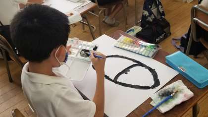 3年2組の図工の様子です。テーマは「カラフルな魚」です。どんな作品ができあがるのかとても楽しみです。