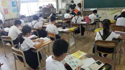 4年生は1組が「やるKey」、2組は辞書による意味調べの学習です。